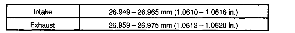 If the bushing bore diameter of the cylinder head is greater than 10.313 mm (0.4060 inch), machine the bushing bore to the following dimension: 10.345 - 10.363 mm (0.4073 - 0.4080 inch)