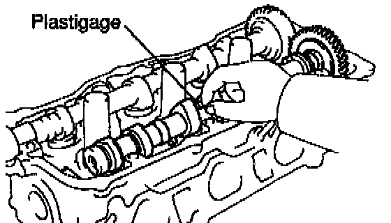 c. Lay a strip of Plastigage across each of the camshaft journal.