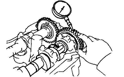 If the backlash is greater then maximum, replace the camshafts.