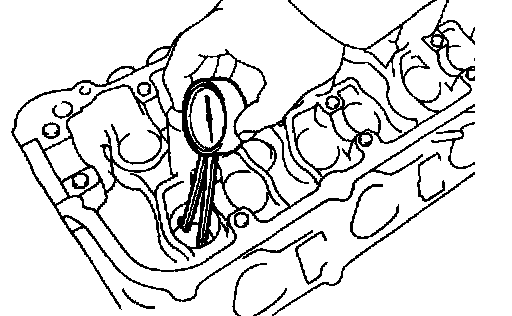 Check that bearings for flaking and scoring. If the bearings are damaged, replace the bearing caps and cylinder head as a set.