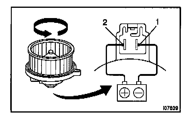 Connect the positive (+) lead from the battery to terminal 2 and the negative (-) lead to terminal 1, then check that the motor operations smoothly.