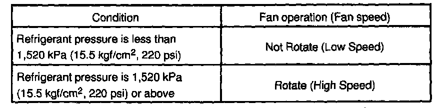 1. INSPECT CONDENSER FAN OPERATIONInspect the fan operation, as shown in the chart below.