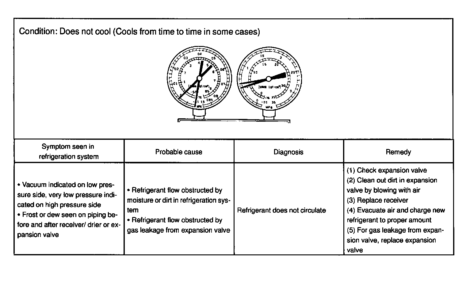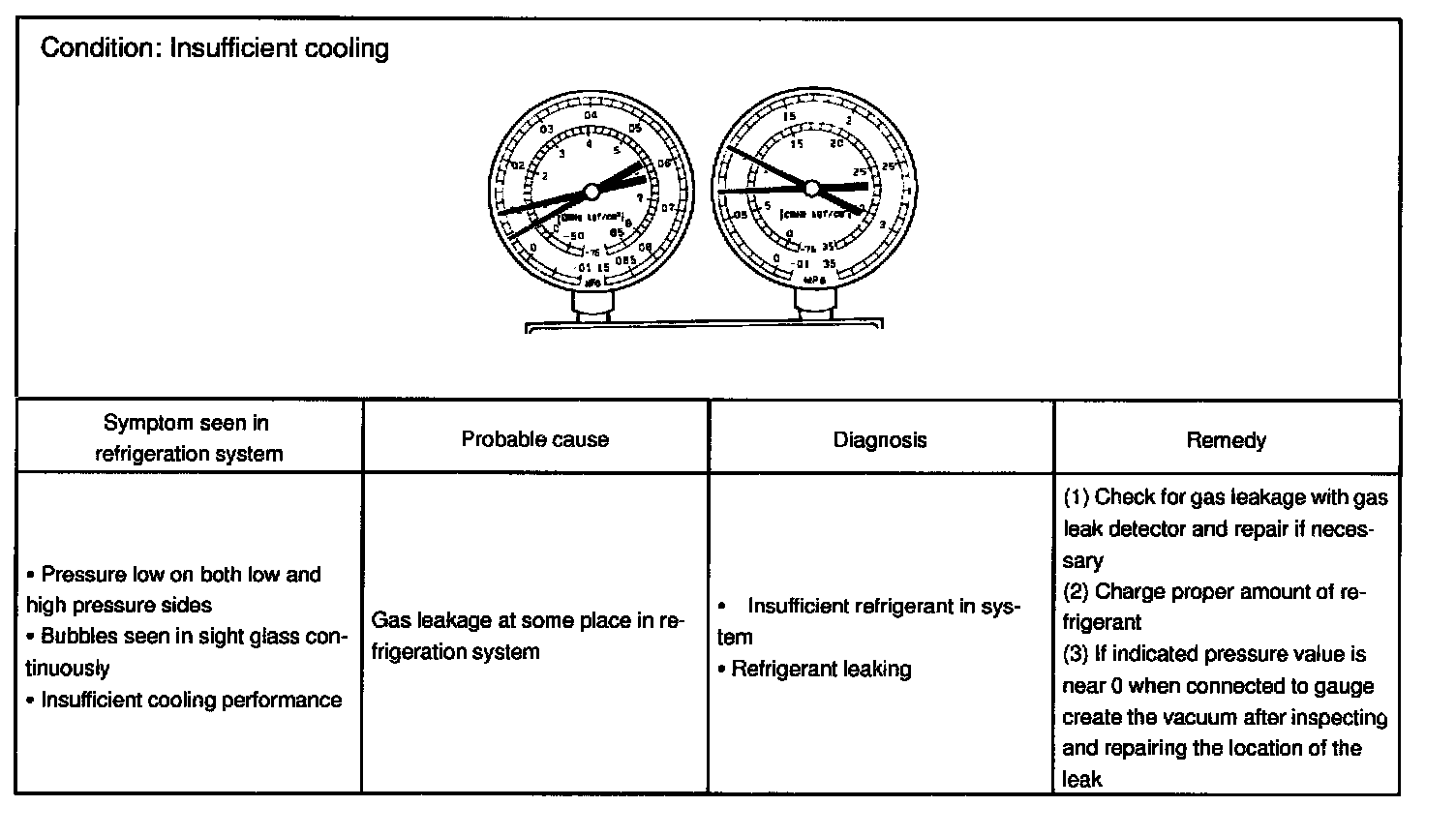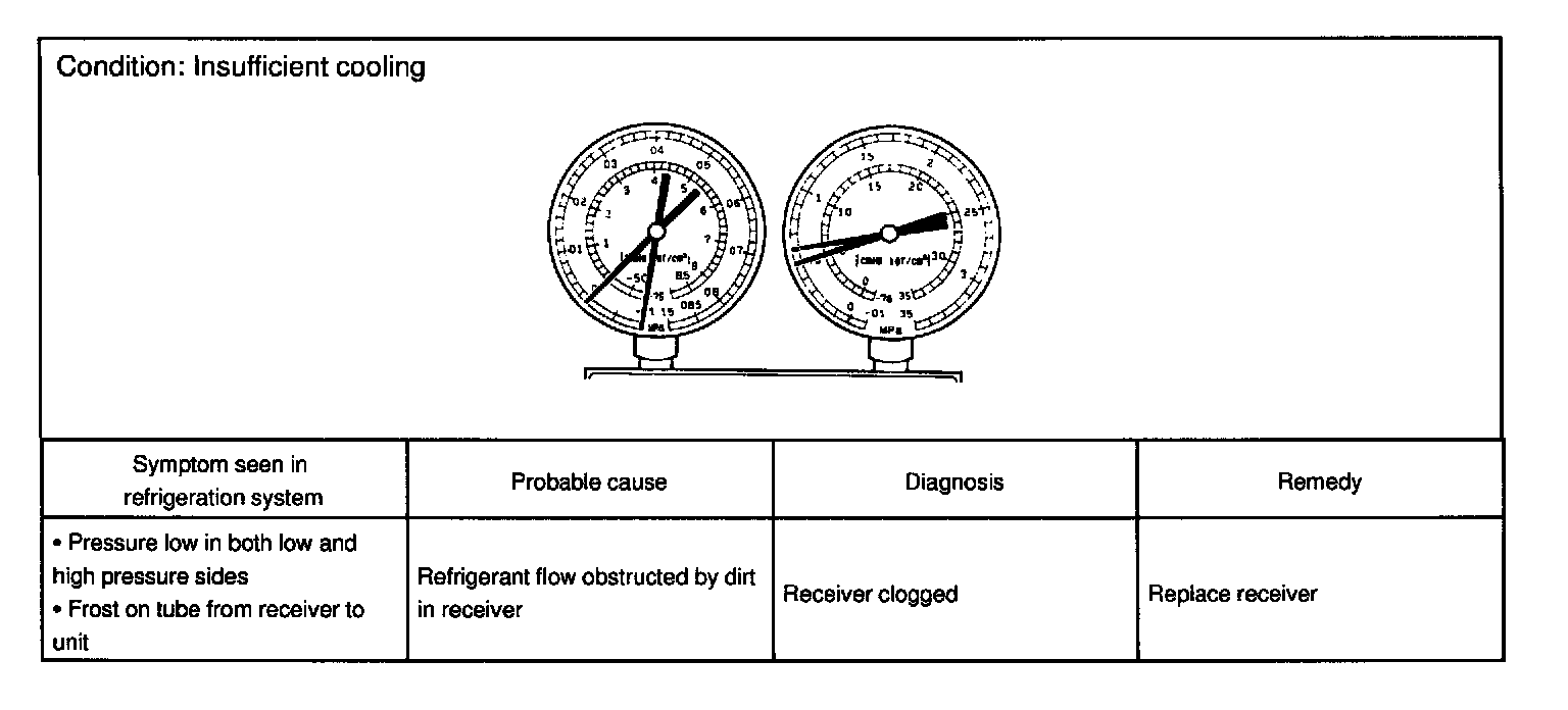 This is a method in witch the trouble is located by using a manifold gauge set. Read the manifold gauge pressure when the these conditions are established.