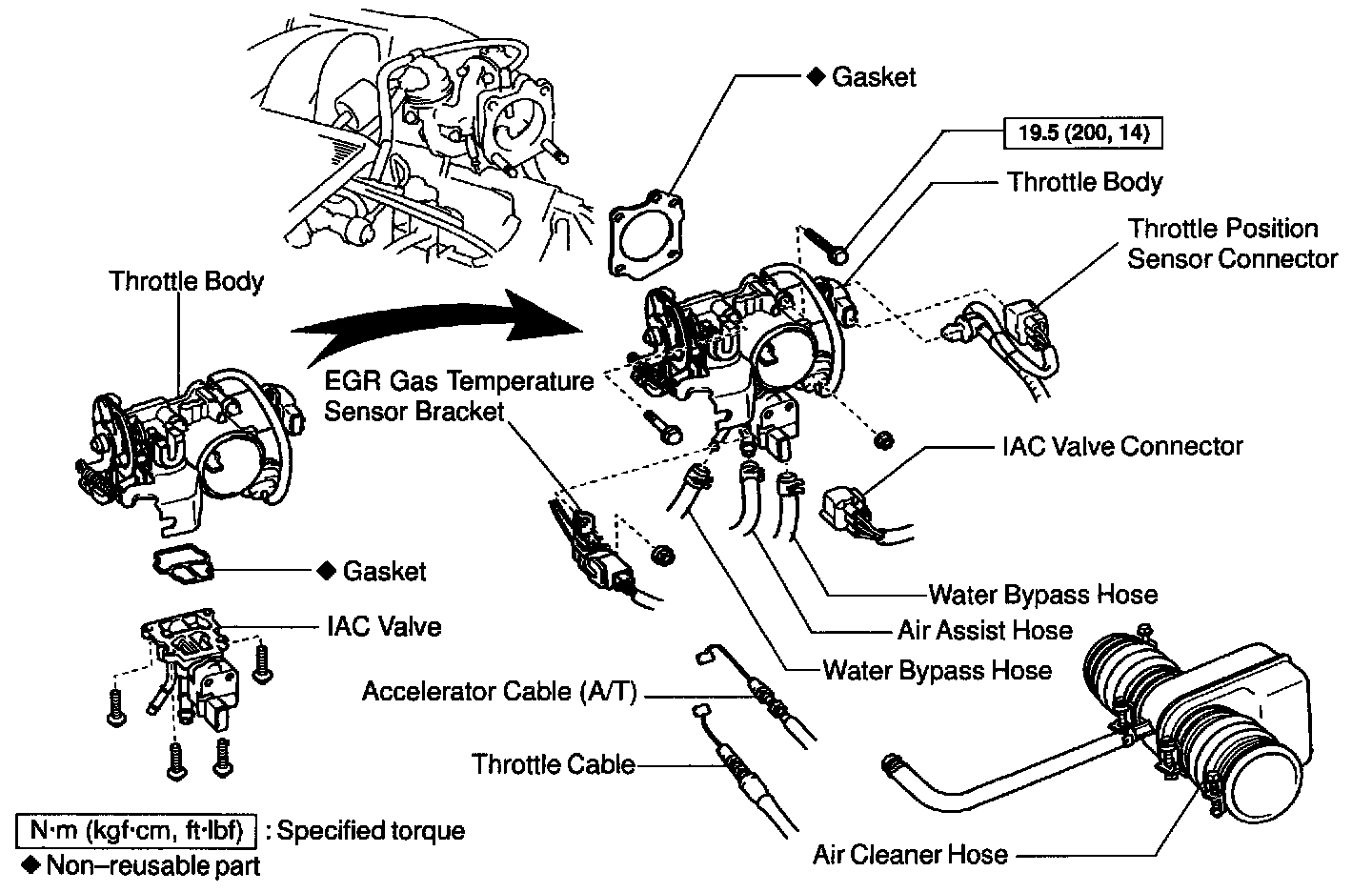 HINT: At the time of installation, please see the items. Place a new gasket on the throttle body.