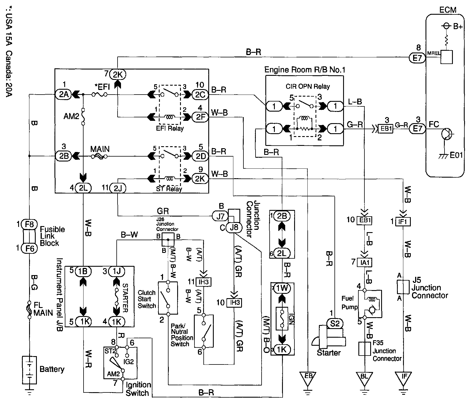 In the diagram below, when the engine is cranked, current flows from terminal ST of the ignition switch to the starter relay coil and also current flows to terminal STA of ECM (STA signal).