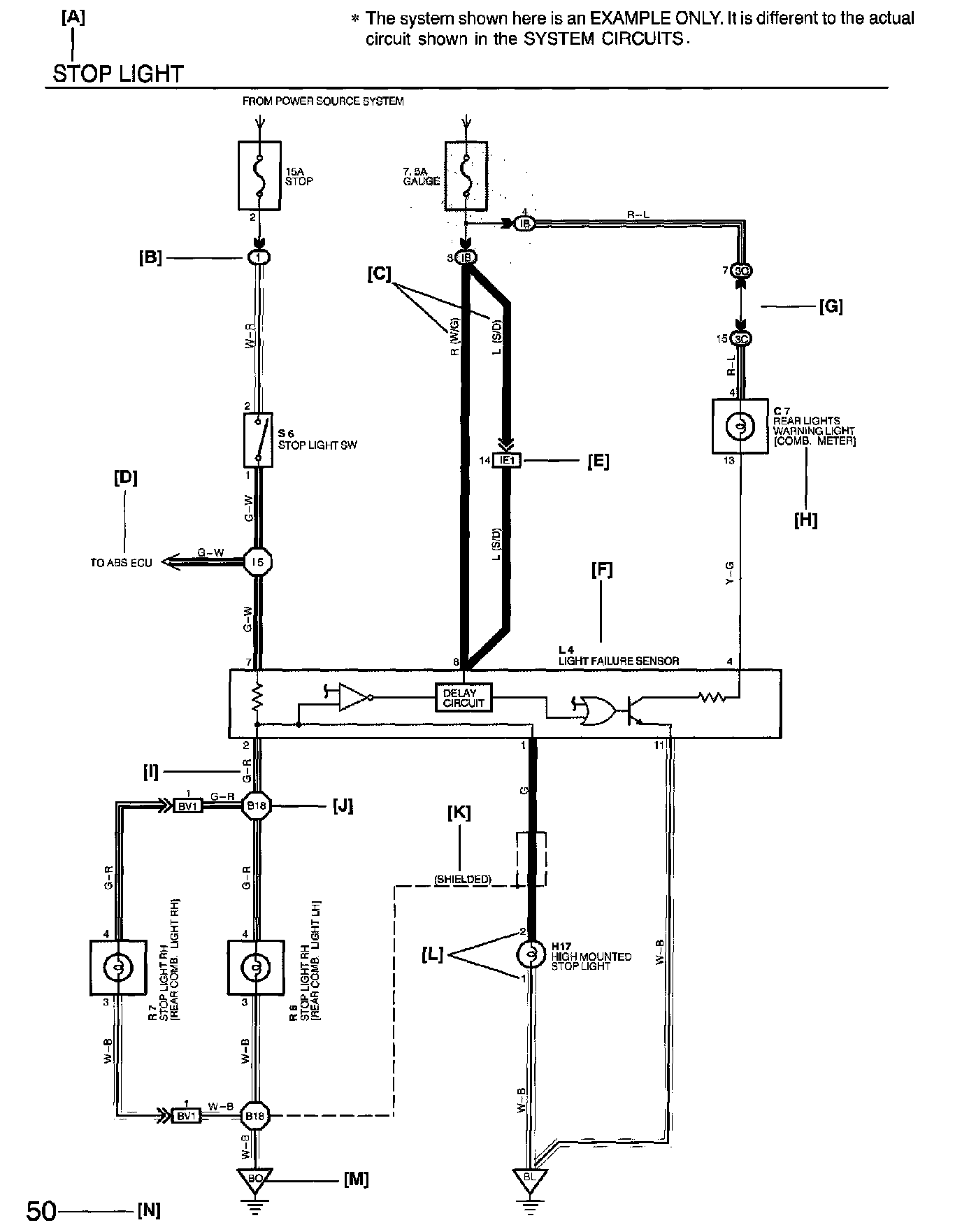 C: ( ) is used to indicate different wiring and connector, etc. when the vehicle model, engine type, or specification is different.