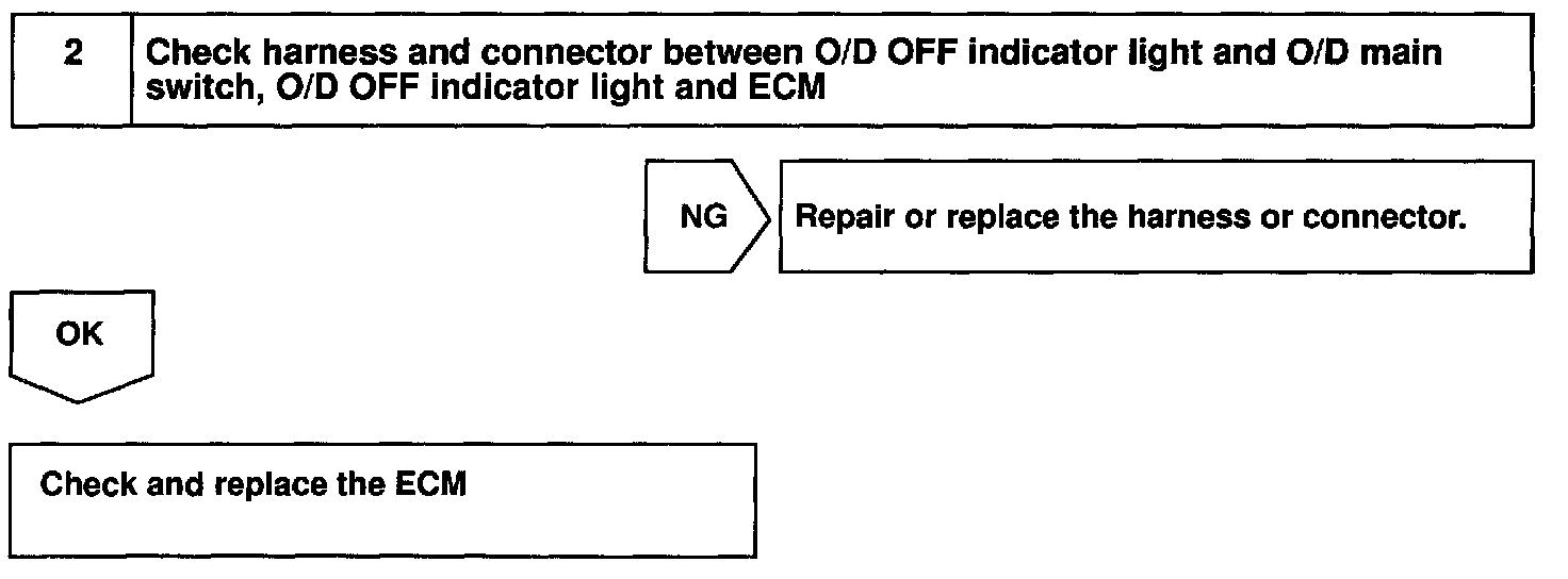 In O/D main switch at OFF position, the O/D OFF indicator light lights up, and the ECM prohibits shifting over drive.