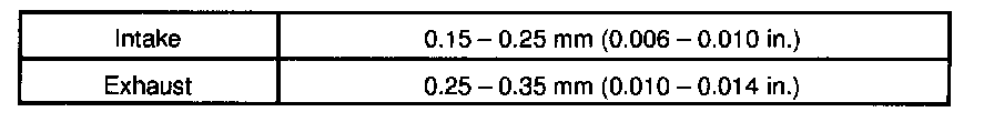 2. Record out of specification valve clearance measurements. They will be used later to determine the required replacement adjusting shim.