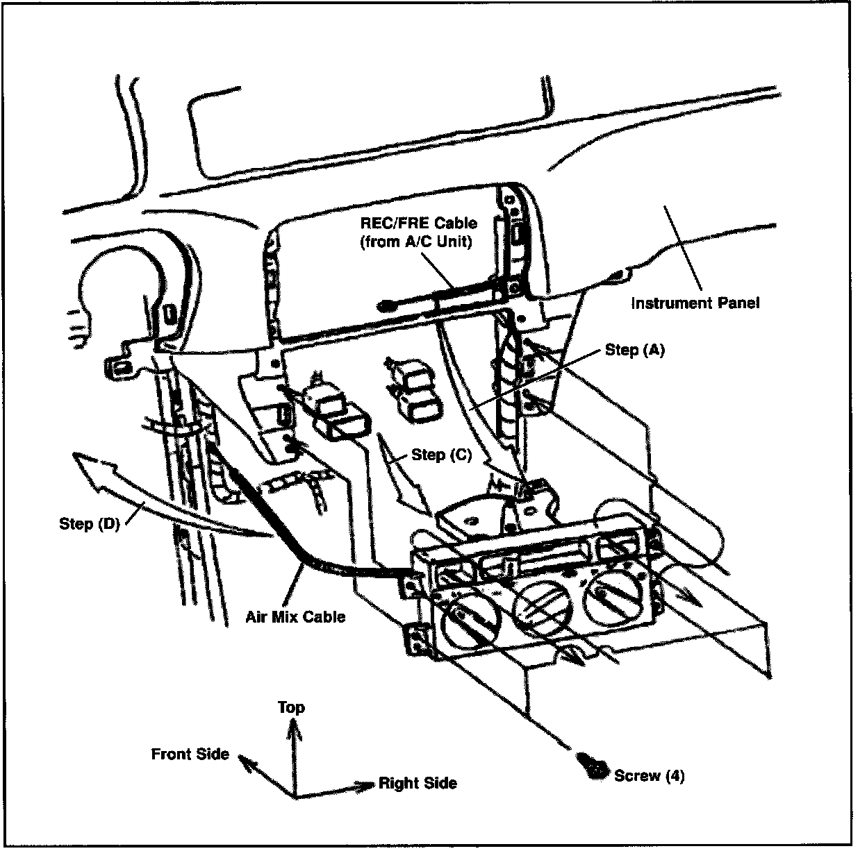 Make sure air mix cable is routed outside of the brace.