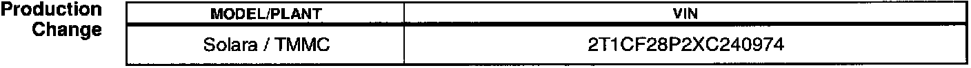 PRODUCTION CHANGE