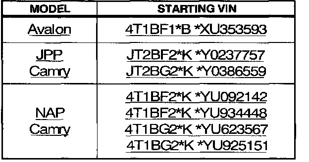 1997 - 1999 Model Year Avalon and 1997 - 2000 Camry vehicles.