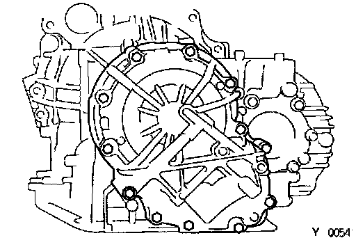 b. Tap on the circumference of the overdrive case with a plastic hammer to remove the overdrive case and gasket.