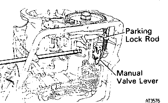 d. Slide out the shaft from the transaxle case and remove the manual valve lever and parking lock rod.