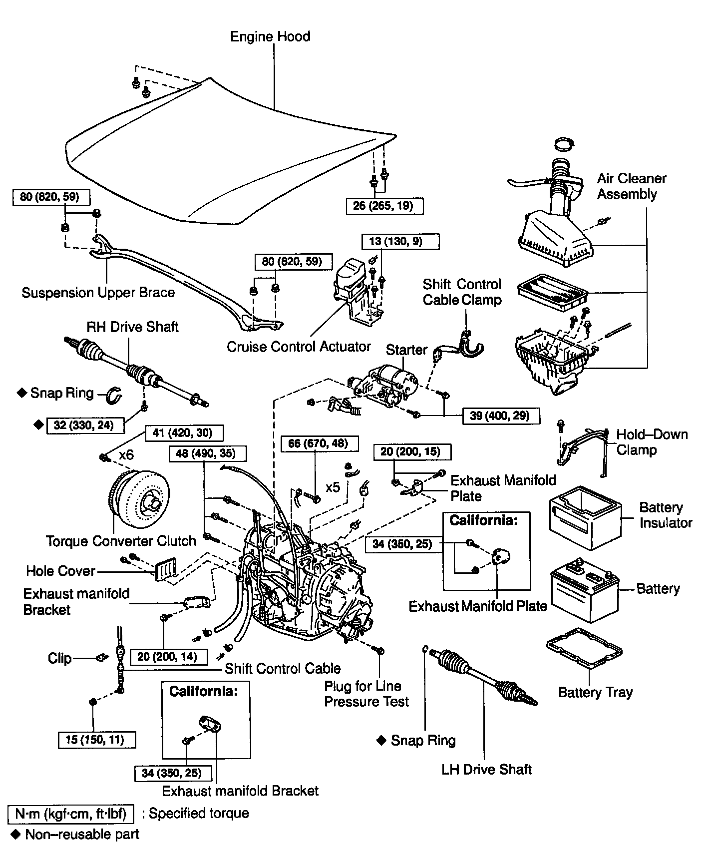 California: 34 Nm (350 kgf cm, 25 ft. lbs.)