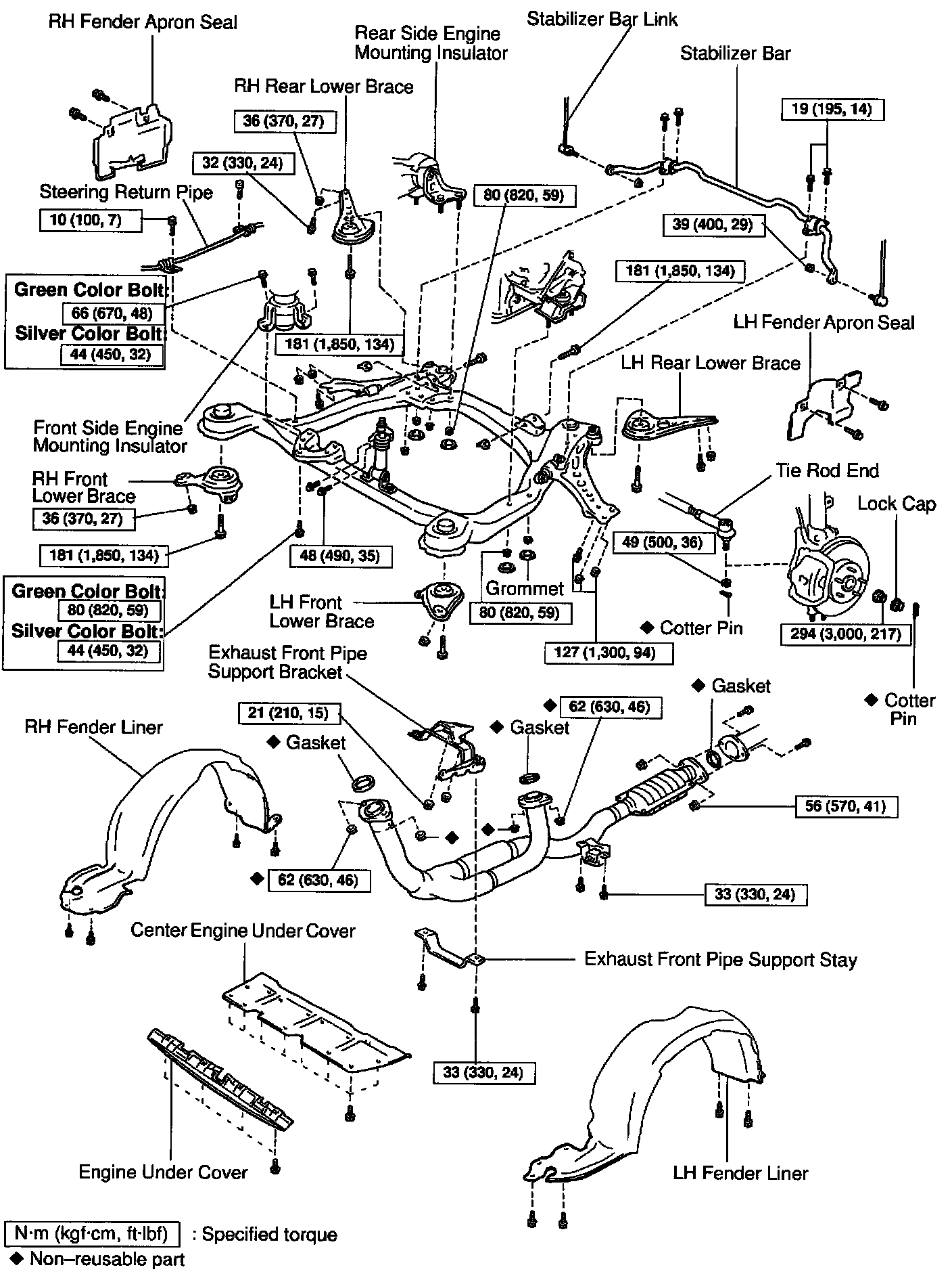 Green color bolt: 66 Nm (670 kgf cm, 48 ft. lbs.)