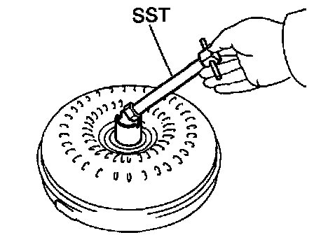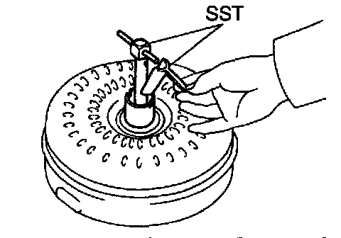 b. Install SST so that it fits in the notch of the converter hub and outer race of the one-way clutch.