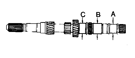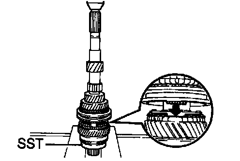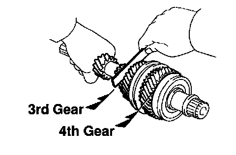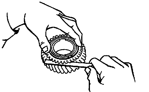 c. Using a feeler gauge, measure the clearance between the synchronizer ring back and gear spline end.