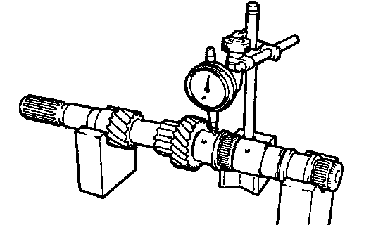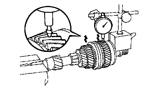 Using a dial indicator, measure the radial clearance between the gear and shaft.