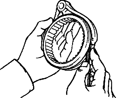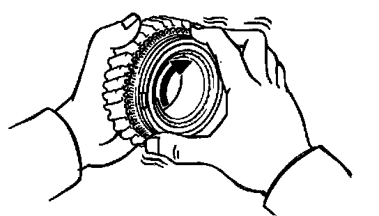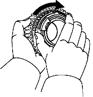 b. Check the braking effect of the synchronizer ring. Turn the synchronizer ring in one direction while pushing it to then gear cone. Check that the ring locks.