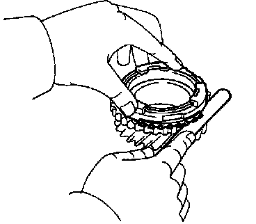 c. Place the synchronizer ring on the gear and align the ring slots with the shifting keys.