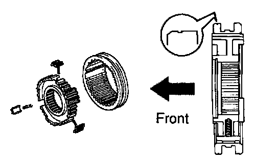 HINT: Direct identification groove of the hub sleeve to front of the transmission.
