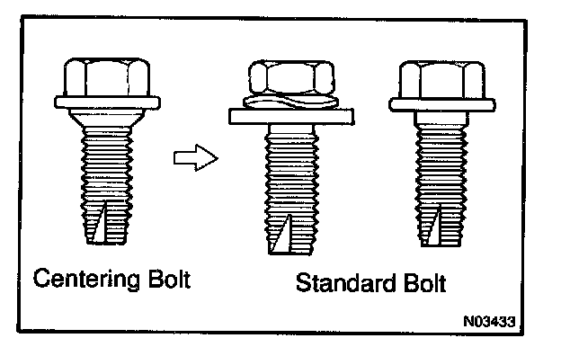 HINT: Since the centering bolt is used as the door side hinge bolt, the door hinge cannot be adjusted with it on. Substitute the bolt with the washer for the centering bolt.