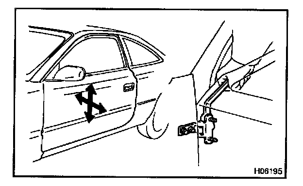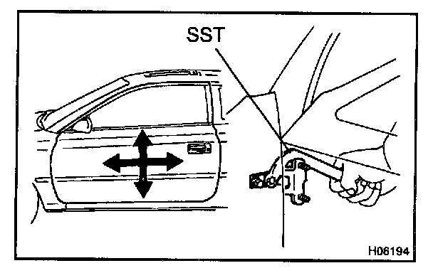 Using SST, adjust the door by loosening the body side hinge bolts.