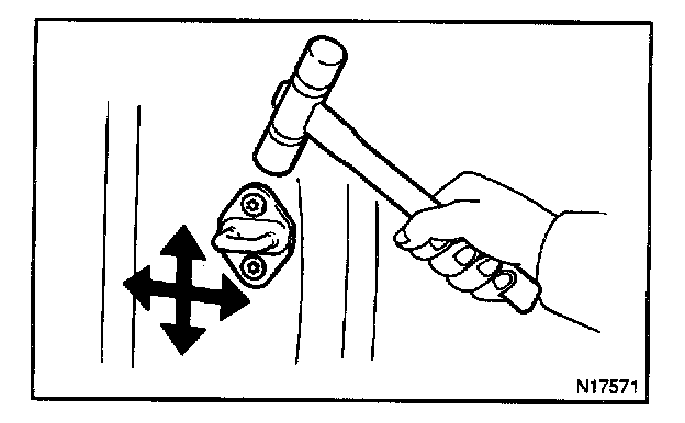 2. Adjust the striker position by slightly loosening the striker mounting screws, and hitting the striker with a hammer.