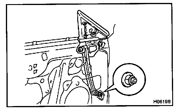 1. Loosening the nut on the bottom of the front lower frame and the nuts on the bottom of the window regulator.