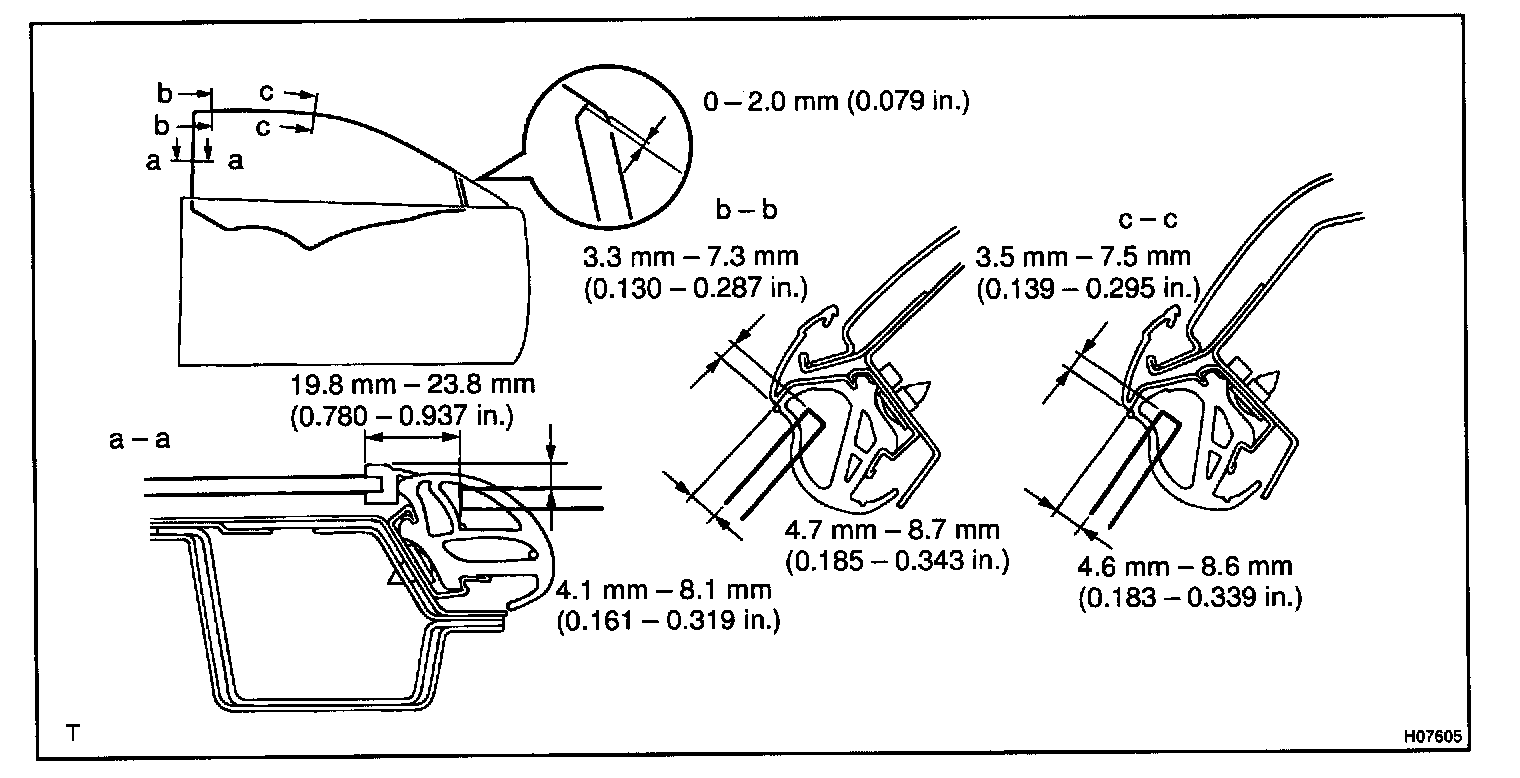 1. When you close the door with the glass fully closed, the b-b, c-c sections are in the same condition as shown in the illustration.