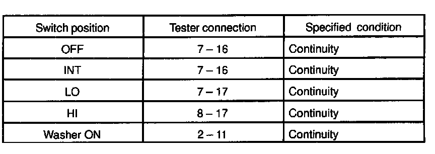 1. INSPECT FRONT WIPER AND WASHER SWITCH CONTINUITY