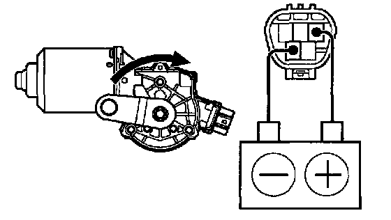 Connect the positive (+) lead from the battery to terminal 2 and the negative (-) lead to terminal 1, check that the motor operates.