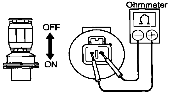 a. Check that no continuity exists between terminals with the switch OFF (float up).