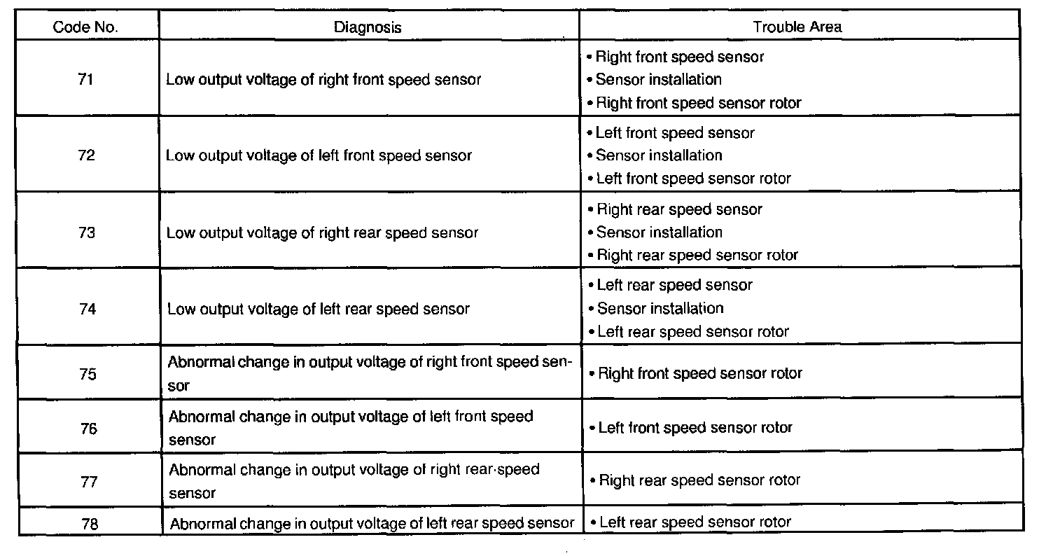 If every sensor is normal, a normal code is output (A cycle of 0.25 secs. ON and 0.25 secs. OFF is repeated).