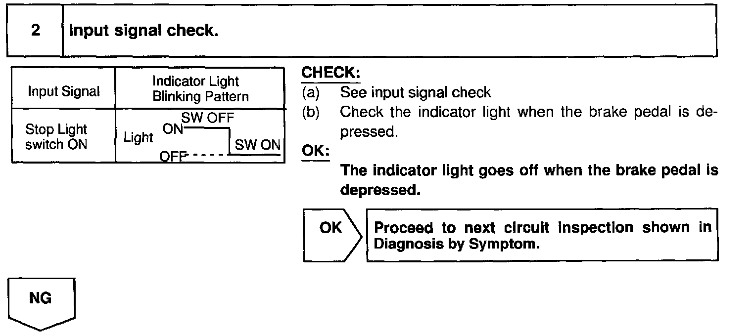 CIRCUIT DESCRIPTIONWhen the brake pedal is depressed, the stop light switch sends a signal to the ECU. When the ECU receives this signal, it cancels the cruise control.