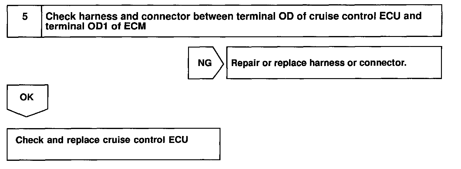 If vehicle speed down, also when terminal ECT of the cruise control ECU receives down shifting signal, it sends a signal from terminal OD to ECM to cut overdrive until the end of the uphill slope, and the gear shifts are reduced and gear shift points in the electronically controlled transmission are changed.