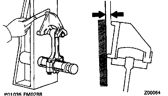 e. Check the piston pin fit at normal room temperature. Coat the piston pin with engine oil, and push it into the connecting rod with your thumb.