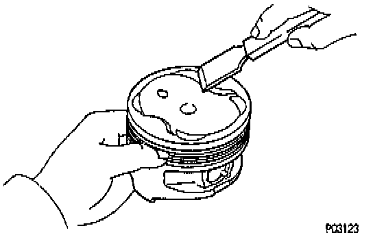 a. Using a gasket scraper, remove the carbon from the piston top.
