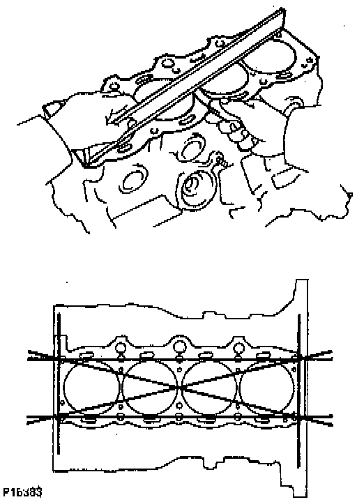 Using a precision straight edge and feeler gauge, measure the surfaces contacting the cylinder head gasket for warpage.