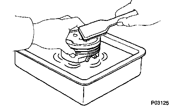 c. Using solvent and a brush, thoroughly clean the piston.