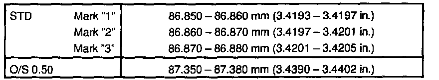 O/S 0.50 87.350 - 87.380 mm (3.4390 - 3.4402 inch)