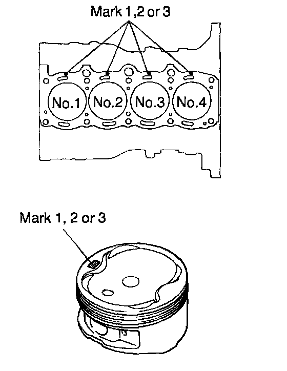 Use a piston with the same number mark as the cylinder bore diameter marked on the cylinder block.