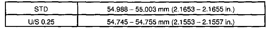 Standard oil clearance: 0.005 - 0.011 mm (0.0002 - 0.0004 inch)