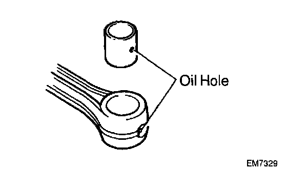 b. Align the oil holes of a new bushing and the connecting rod.