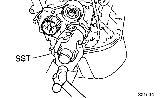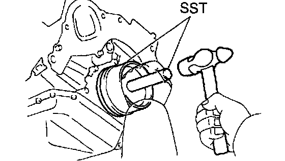 2) Using SST and a hammer, tap in a new oil seal until its surface is flush with the oil pump body edge.