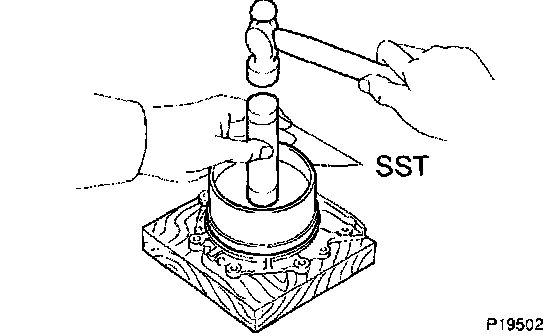 4) Using SST and a hammer, tap in the oil seal until its surface is flush with the rear oil seal retainer edge.