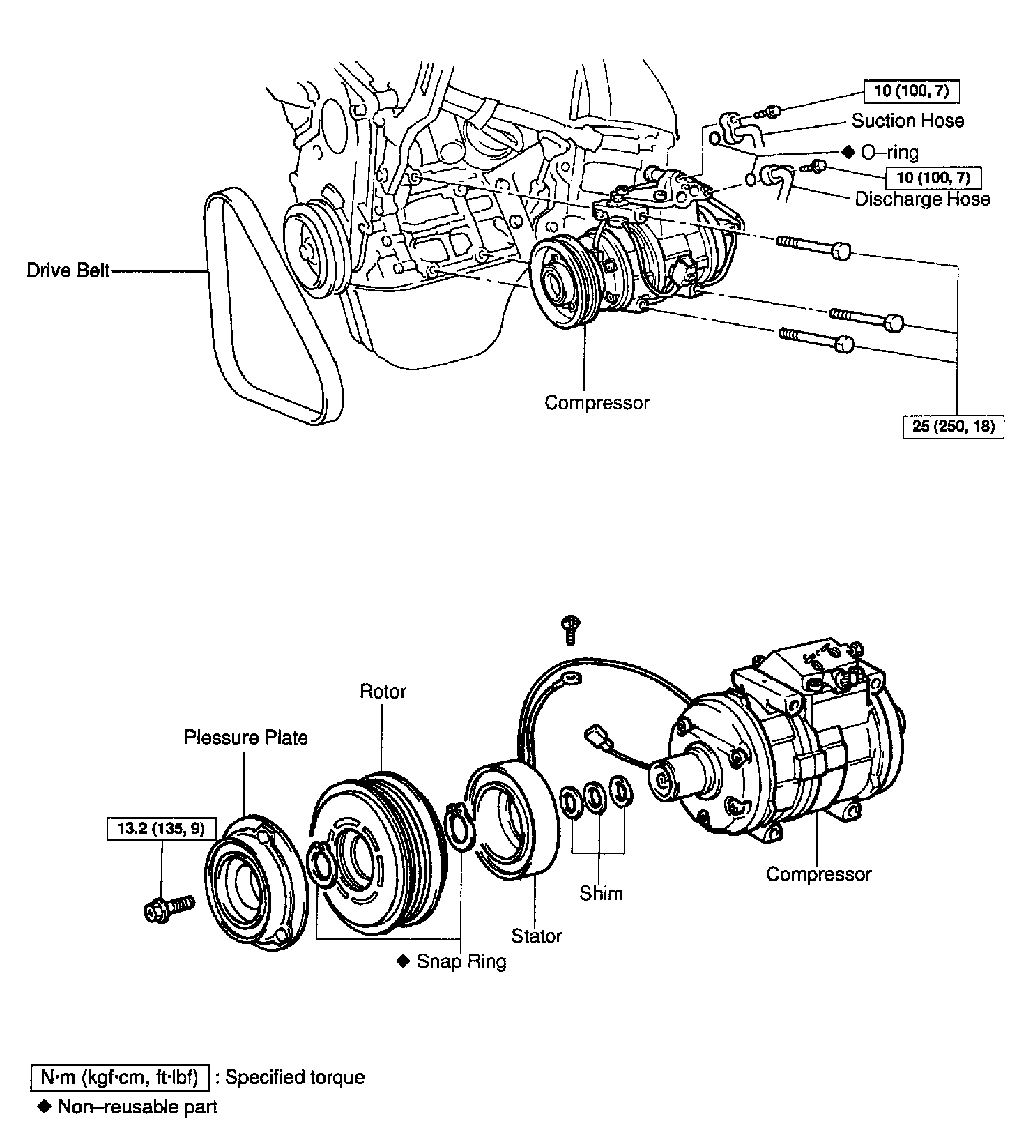 6. DISCONNECT DISCHARGE HOSE AND SUCTION HOSE FROM COMPRESSOR