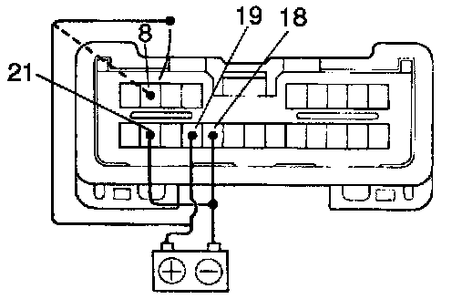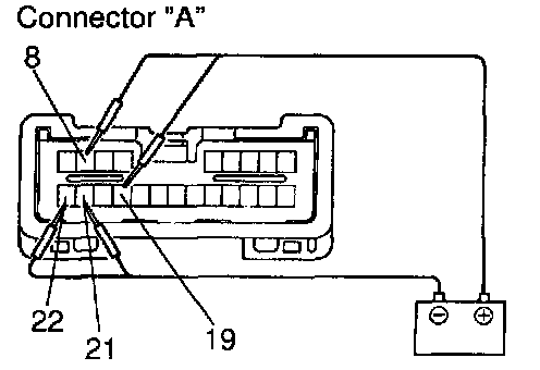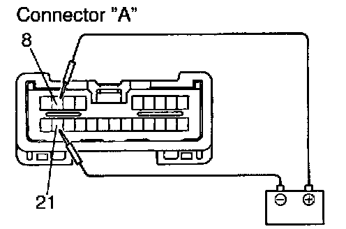 a. Connect the positive (+) lead from the battery to terminal A - 8 and the negative (-) lead to terminal A - 21.