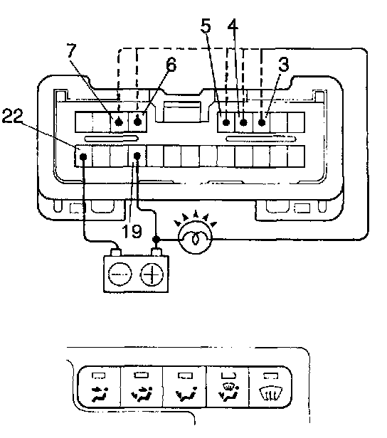3. Then, connect the positive (+) lead from the battery to terminal A - 8 and negative (-) lead to terminal A - 21 and check that the indicator dims.