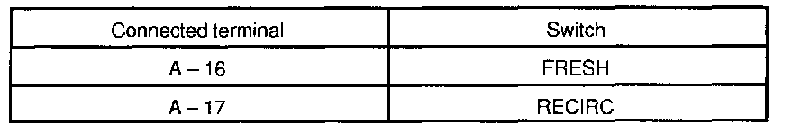 c. Check that the FRESH, RECIRC indicator and test bulb light up alternately each time the air inlet control switch is pressed.